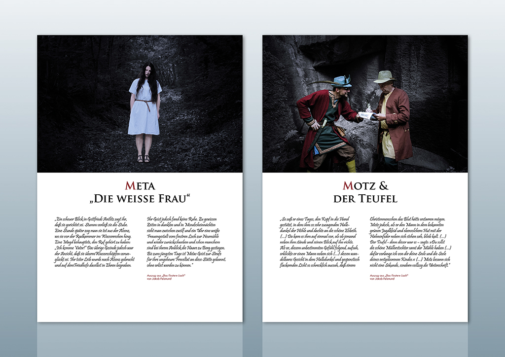 Layout für eine Info-Tafel zur Sage "Das finstere Loch" von Jakob Felsmund