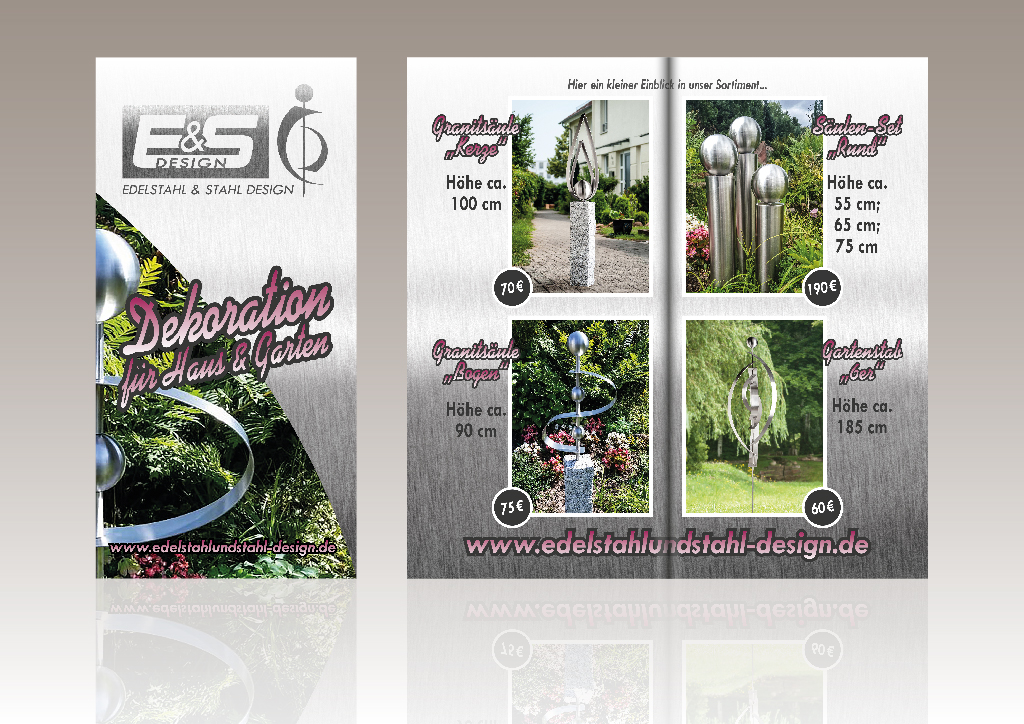 Layout für einen Flyer eines Kunsthandwerks-Unternehmens,
